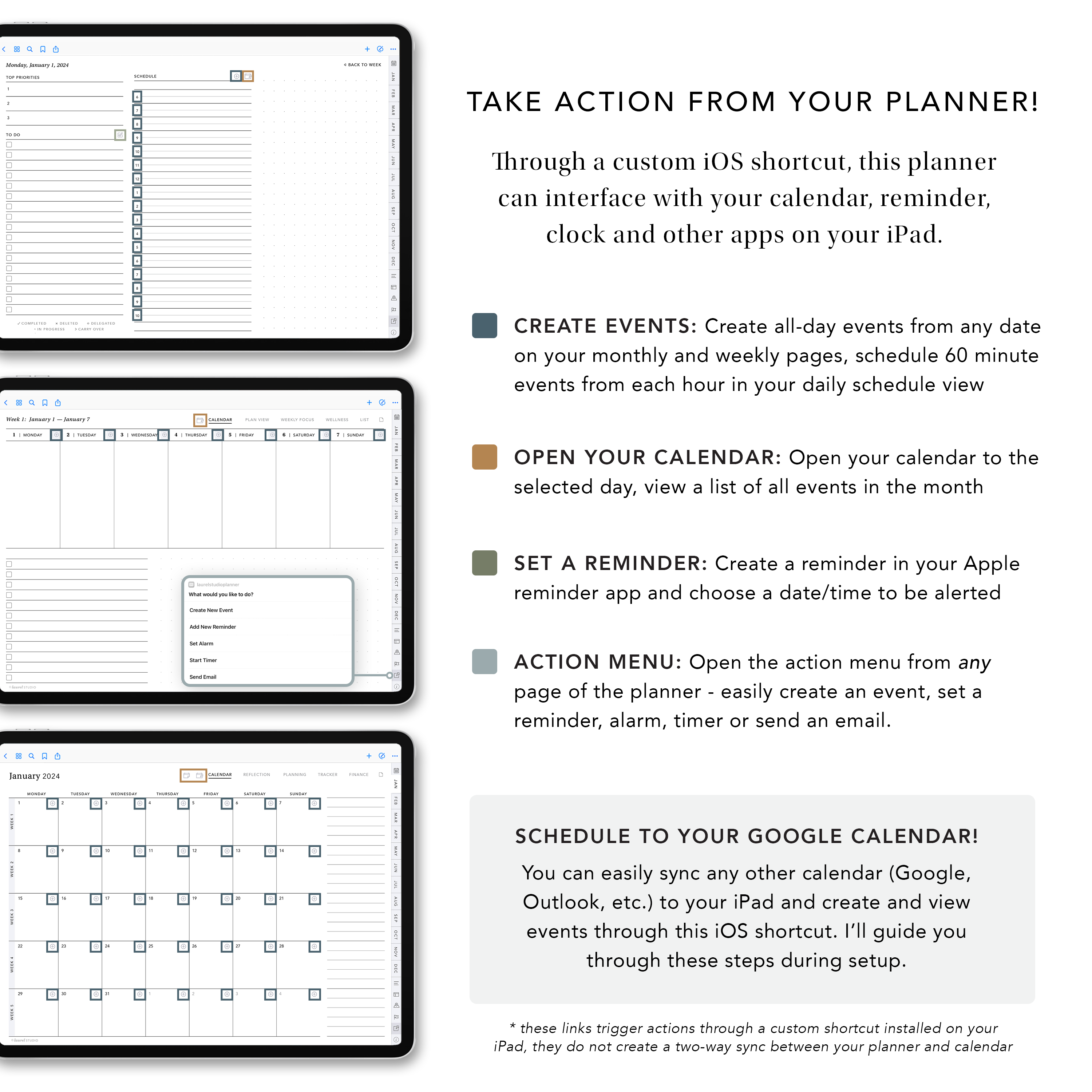 2024 Goal Planner with Calendar Scheduling Links for iPads