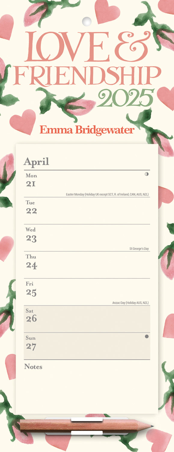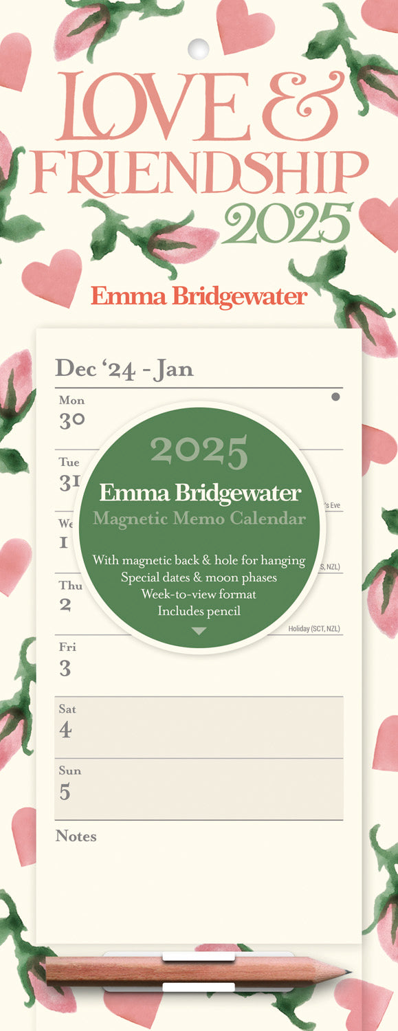 Emma Bridgewater, Hearts & Roses Magnetic Slim Calendar 2025